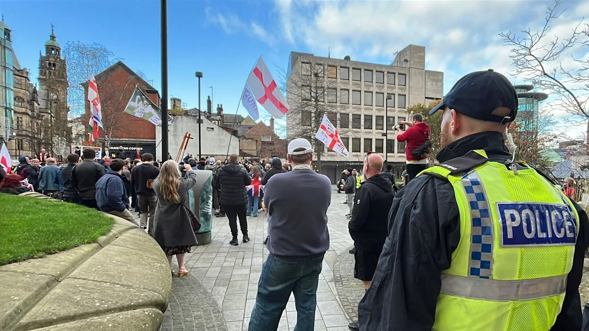 التقى متظاهرو حزب استقلال المملكة المتحدة في ميدان تيودور وساروا إلى شارع بلونك، بينما التقى متظاهرو الوقوف في وجه العنصرية في كاتدرائية شيفيلد وتوجهوا إلى كاسلجيت لتنظيم احتجاج ثابت.