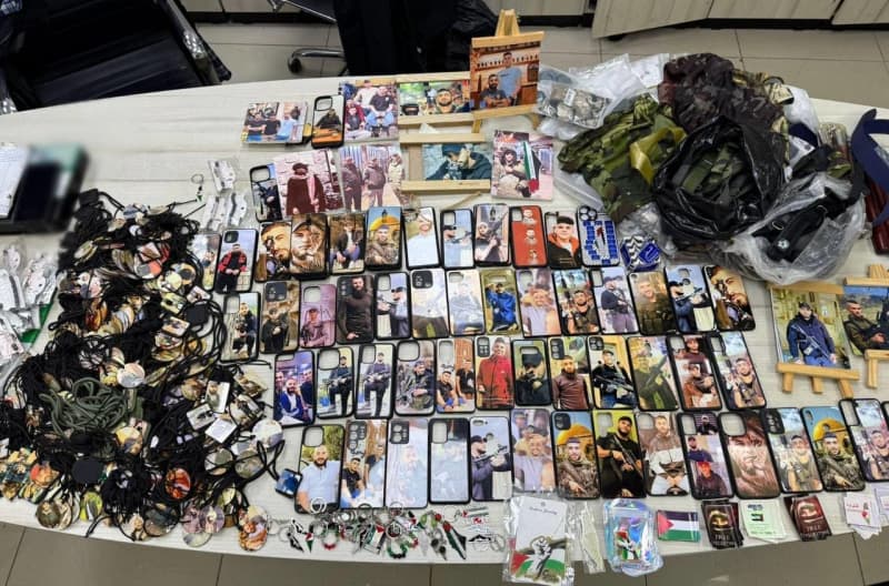 وكشف تفتيش المواد المباعة عن “صور الإرهابيين، والقلائد والمعلقات مع أغطية الهواتف المحمولة مع رموز إرهابية وصور الإرهابيين، من بين أشياء أخرى تشجع على العنف والإرهاب”، بحسب متحدث باسم الشرطة الإسرائيلية.
