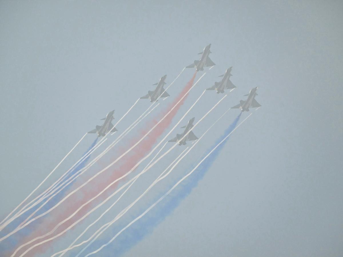 في بعض الأحيان، كان من الصعب رؤية أشكال طائرات J-10 وهي تشق طريقها عبر السماء الغامضة.