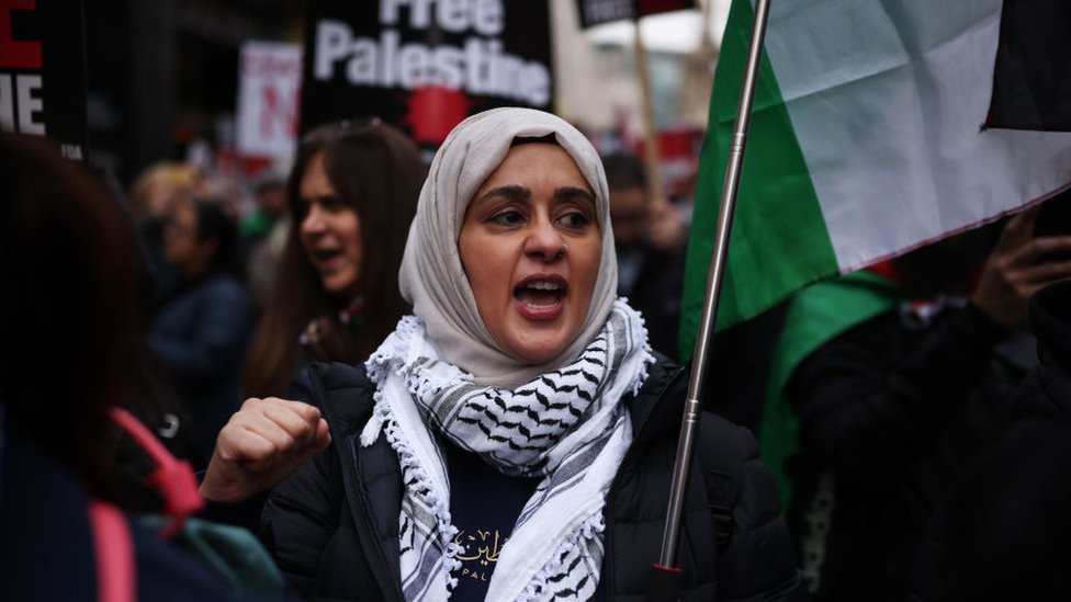 شقت الحشود طريقها عبر سيرك أكسفورد ووايتهول، في ما أصبح حدثًا منتظمًا في العاصمة منذ هجوم أكتوبر على إسرائيل من قبل حماس.