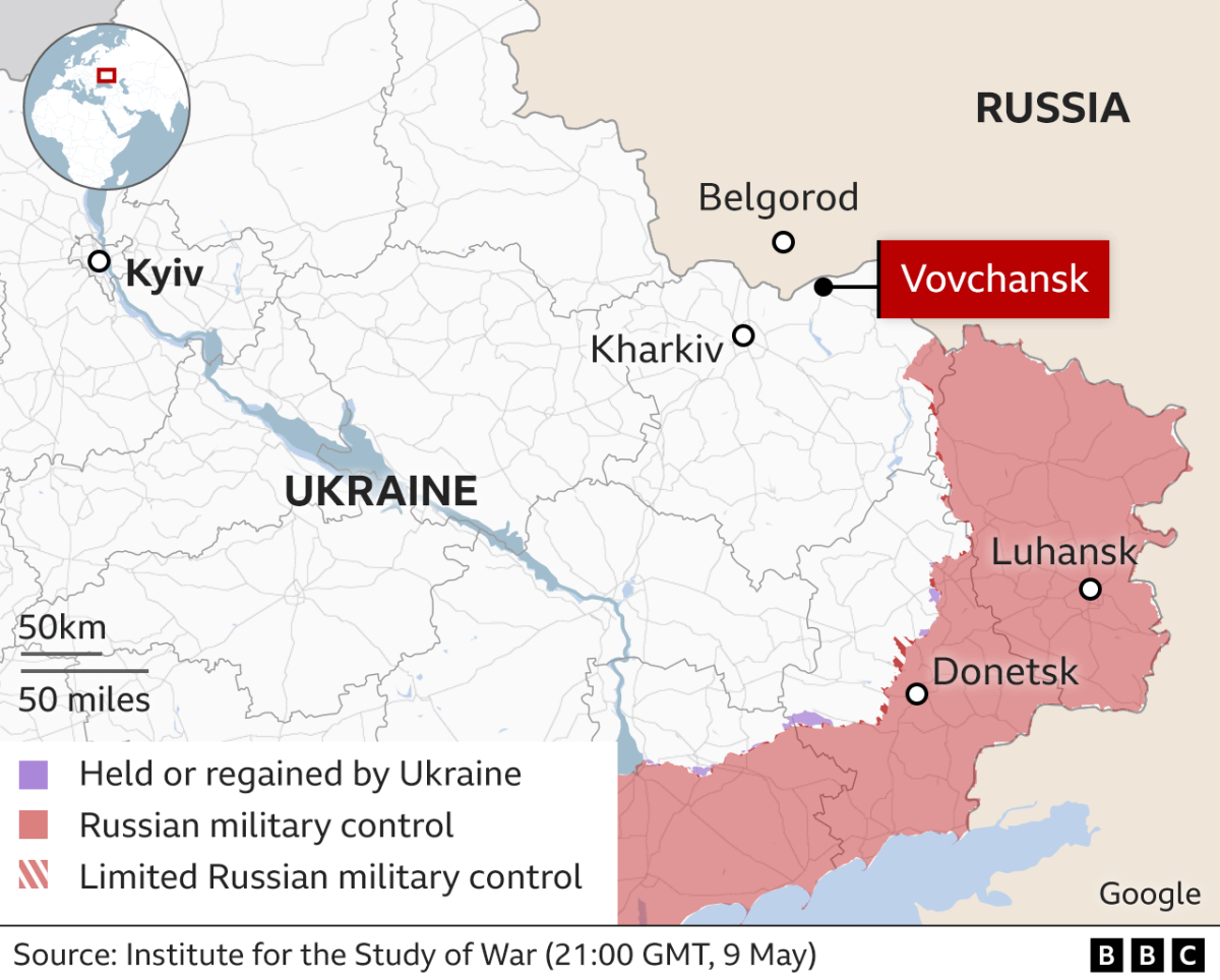 ومن خلال دخول فوفشانسك، على بعد 5 كيلومترات فقط (3 أميال) داخل أوكرانيا، والاستيلاء على مناطق واسعة من الأراضي الأوكرانية في منطقة خاركيف، ربما تحاول القوات الروسية إنشاء منطقة عازلة لصد الهجمات الأوكرانية عبر الحدود.