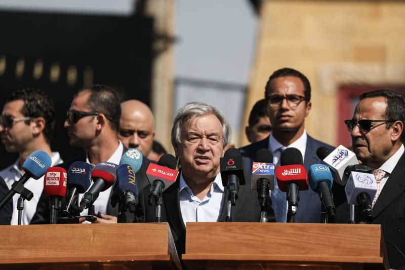 والتقى غوتيريس في وقت سابق اليوم السبت، بالجرحى الفلسطينيين في مستشفى بمدينة العريش في سيناء المصرية بعد إجلائهم من القطاع الساحلي.