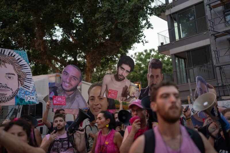 في القدس ، تجمع المتظاهرون أمام المقر الرسمي لرئيس الوزراء بنيامين نتنياهو. لقد طالبوا اتفاقًا لإطلاق سراح الرهائن الذين ما زالوا محتجزين.