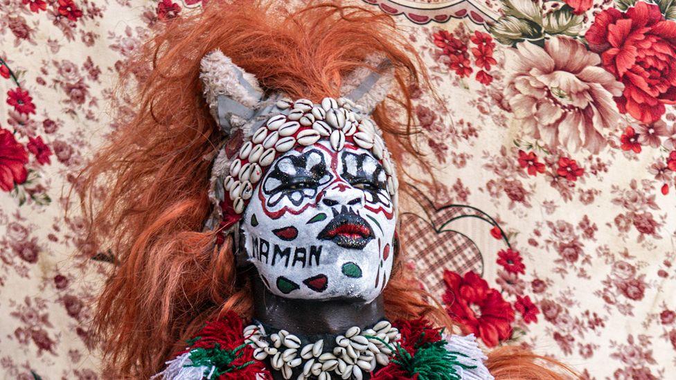 أحد الفنانين في العرض الترفيهي الشهير على شاطئ Fake Lion في السنغال يقف أمام الكاميرا يوم الأربعاء في حدث ثقافي في العاصمة داكار.