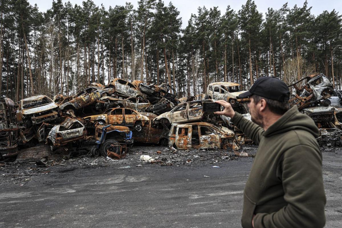 أثناء القيادة خارج كييف، تحكي الطرق التاريخ المظلم للأيام الأولى للغزو الروسي واسع النطاق. يتردد صدى صوت طنين منخفض عبر الطريق السريع بينما تتجه مئات السيارات نحو ضاحية بوتشا.