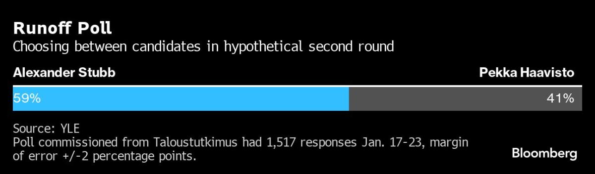 (بلومبرج) – شهد السباق الرئاسي في فنلندا رئيسة الوزراء السابقة الكسندر ستوب ووزير الخارجية السابق بيكا هافيستو في الصدارة، ويقترب من جولة الإعادة في غضون أسبوعين.