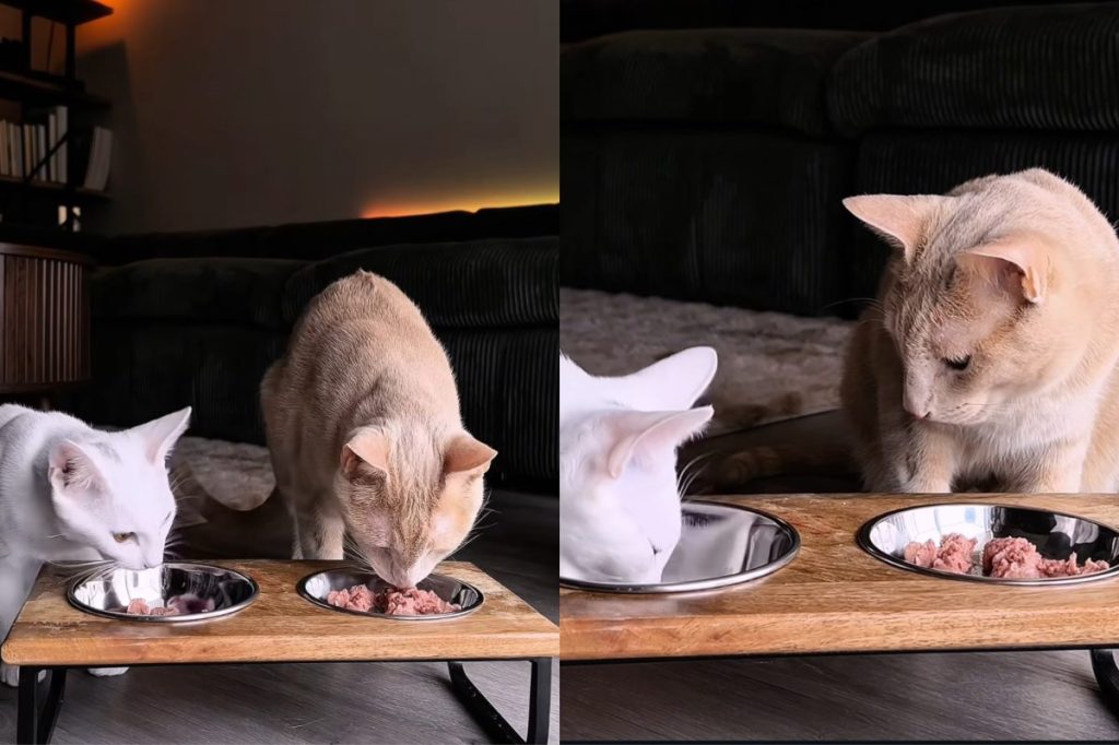 القطة ليست متأكدة مما إذا كان شقيق فروي على ما يرام لأنها “تستنشق” طعام في فيديو فرحان
