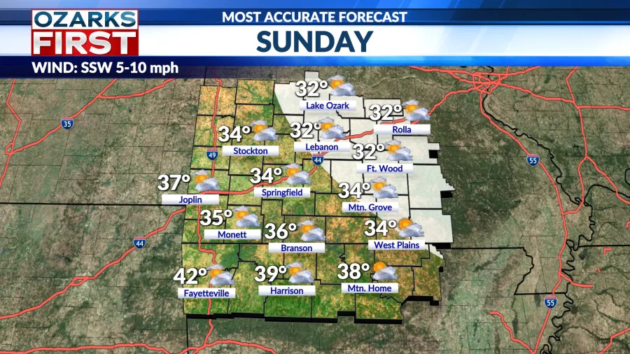 يجلب يوم الأحد تحسنًا طفيفًا، حيث تصل درجات الحرارة إلى ذروتها ببضع درجات فوق علامة التجمد.