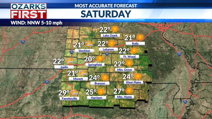 من المتوقع أن تتراوح برودة الرياح من -10 إلى -15 في وقت مبكر من صباح يوم السبت، مع تحسن طفيف جدًا على مدار اليوم. وستظل درجات الحرارة المرتفعة عالقة في العشرينات تحت سماء مشمسة في معظمها، مصحوبة برياح شمالية نشطة.