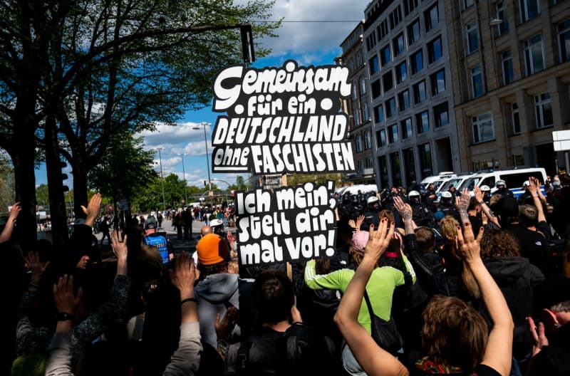 وقالت الشرطة إن المجموعة التي تضم حوالي 200 شخص كانت بمثابة عكس في الطريق إلى تجمع تحت شعار معًا لألمانيا ، حضره حوالي 500 شخص. كما اجتمع 400 شخص مضاد.