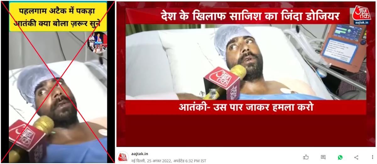 يحمل الميكروفون المرئي في الفيديو المشترك زوراً اسم منفذ الأخبار الهندي AAJ TAK ، وأدى البحث عن الكلمات الرئيسية اللاحقة إلى إصدار أطول من نفس اللقطات المنشورة على موقع القناة في 25 أغسطس 2022 (رابط مؤشف).