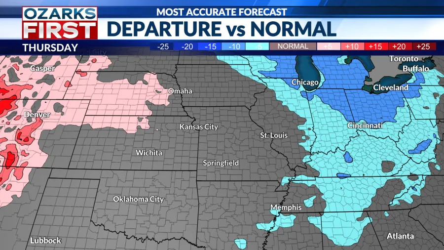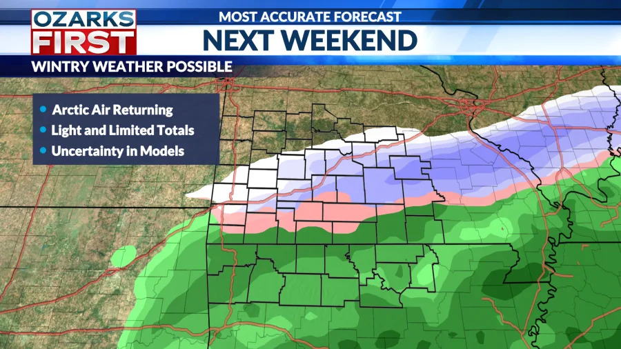 ومرة أخرى، سنواجه جبهة قطبية قطبية تجتاح منطقة أوزاركس، مما يؤدي إلى انخفاض درجات الحرارة إلى ما دون درجة التجمد. تشير النماذج إلى أنه قد يكون هناك ما يكفي من الرطوبة للجبهة لتكون بمثابة عامل محفز لبعض الأحوال الجوية الشتوية.