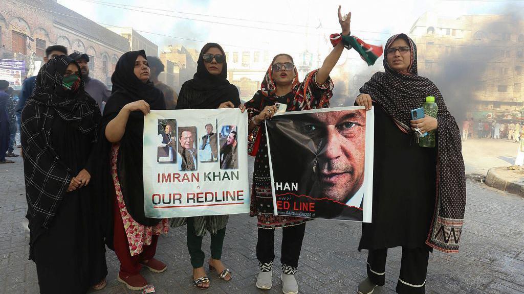ونزل المؤيدون الغاضبون إلى الشوارع في مدن في مختلف أنحاء البلاد وأصبحت المباني التابعة للجيش الباكستاني القوي هدفاً، وهو ما شكل صدمة للمؤسسة المعروفة على نطاق واسع محلياً باسم المؤسسة.