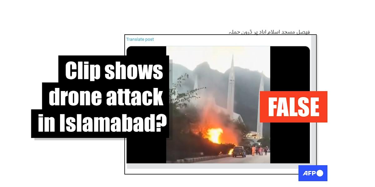تم إساءة استخدام مقطع فيديو يبلغ من العمر عام واحد عن حريق بالقرب من مسجد باكستان الوطني في المناصب التي تدعي أنها تظهر آثار هجوم بدون طيار خلال الصراع الأخير مع الهند. زار صحفي لوكالة فرانس برس مسجد فيصل في إسلام أباد ولم يعثر على علامات على الأضرار الناجمة عن القتال.