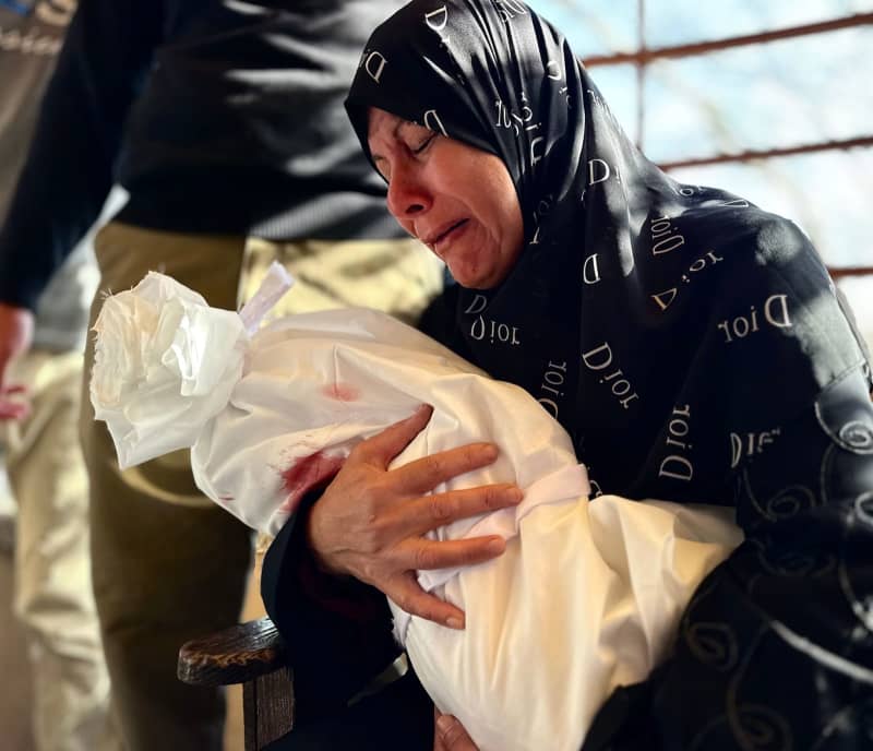 يحمل الناس جثة طفل فلسطيني ، الذي فقد حياته الحية بعد هجمات الإسرائيلية التي تستهدف الفلسطينيين الذين يعيشون في منازل وخيام مؤقتة ، في مستشفى ناصر. Doaa el-Baz/APA صور عبر Zuma Press Wire/DPA