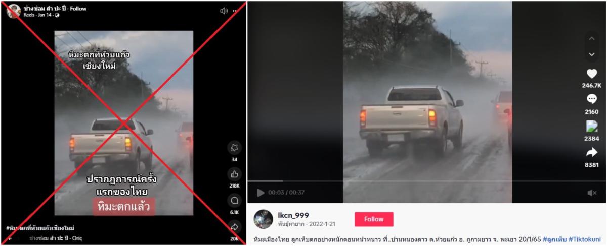 تقول التسمية التوضيحية الأصلية لـ Post: “Thai Snow ، عاصفة ثقيلة في فصل الشتاء في Baan Nong Lao ، Huai Kaew Subdistrict ، Phu Kam Yao District ، مقاطعة Phayao في 20/01/2022“