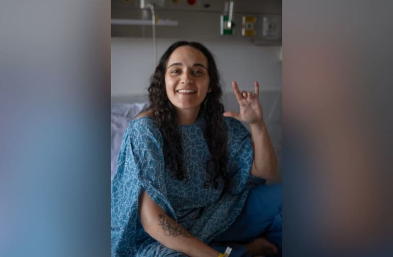 تم إطلاقها الرهينة البريطانية الإسرائيلية ، إميلي داماري ، وهي تحمل لافتة تقرأ في العبرية “The Nightmare انتهت!” أثناء إطلاقها وأفرج عن الرهينة الإسرائيلية ، يتم نقل دورون شتاينبشر إلى المستشفى بعد إطلاق سراحها من أسر غازان. 20 يناير 2025. (الائتمان: قوات الدفاع الإسرائيلية/النشرات عبر رويترز)