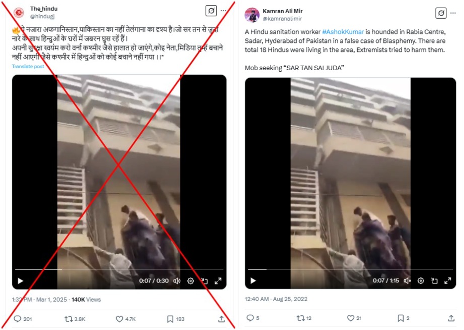 “هذا المشهد ليس من أفغانستان أو باكستان ، بل من تيلانجانا. إنهم يدخلون قسراً في منازل الهندوس مع شعارات مثل” قطع رؤوسهم “، كما يقول جزء من Post باللغة الهندية المشتركة في 1 مارس 2025.