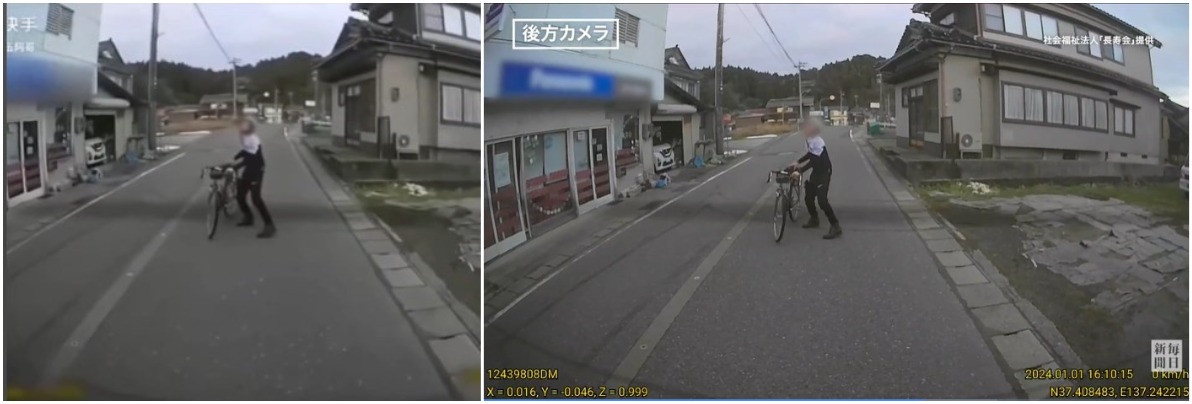 وفقًا لصحيفة ماينيتشي، تم تسجيل اللقطات في الأول من يناير بواسطة كاميرا سيارة تابعة لمنظمة الرعاية الاجتماعية تشوجوكاي، ومقرها في محافظة إيشيكاوا، حيث وقع الزلزال.