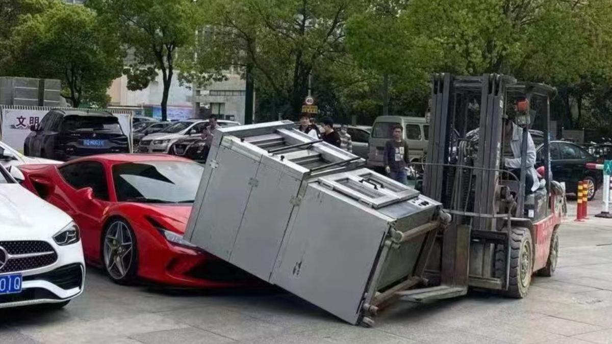 حادث فرن يسحق سيارة فيراري F8 تريبوتو في الصين