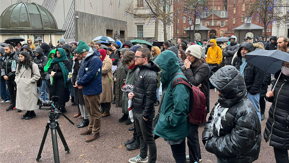 وقال مراسل بي بي سي في لندن، ألبا باتيل، الذي كان في الوقفة الاحتجاجية، إن الطلاب من جنسيات مختلفة، بما في ذلك الأتراك والمصريين والبريطانيين، بكوا وتشابكت أيديهم أثناء قراءة الشعر.