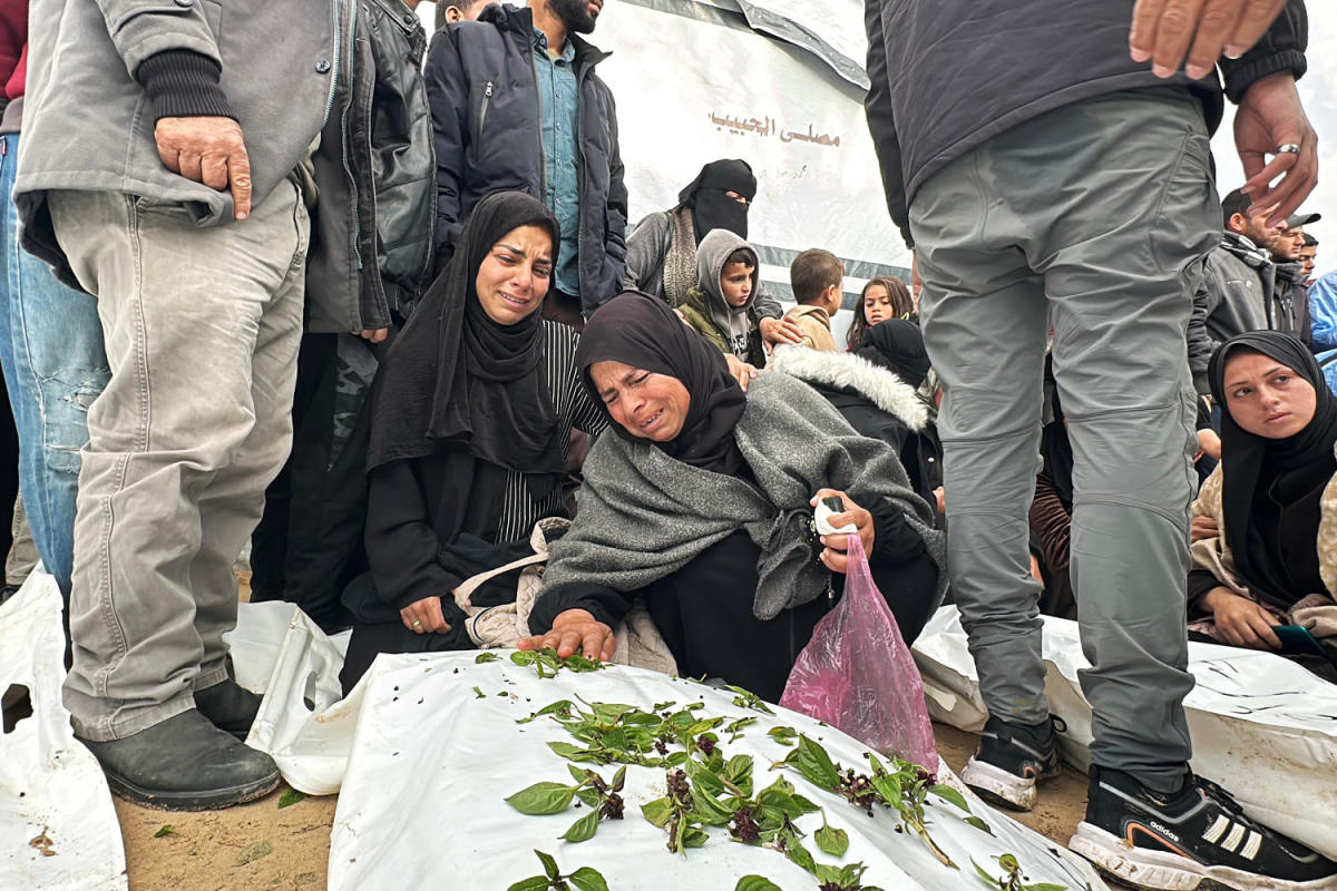 من حولها ، تقع صفوف أكياس الجسم على الأرض في اللقطات التي تم تصويرها بواسطة طاقم أخبار NBC يوم الخميس. تجمعت العائلات حولها ، والحداد على أحبائهم الذين تم سحب رفاتهم من أنقاض المنازل والمباني التي أطاحت خلال هجوم إسرائيل العسكري في الجيب الفلسطيني.