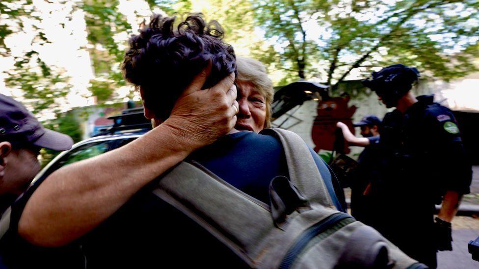 أم تقول وداعا لابنها قبل إخلائه [BBC News]
