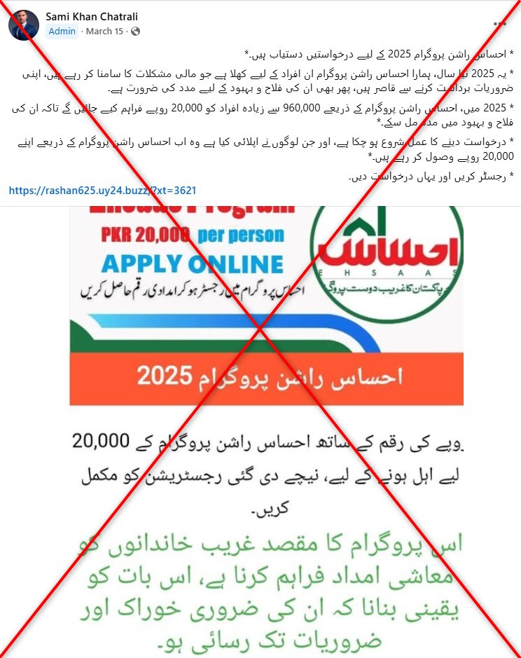 وقال مسؤول اتحادي لوكالة فرانس برس إن مخطط رعاية الحكومة الذي تم إطلاقه في عهد رئيس الوزراء السابق عمران خان انتهى في عام 2022. لا يزال بإمكان المشاركات التي تدعي الباكستانيين التسجيل في رابط البرنامج إلى موقع محتال يحصد التفاصيل الشخصية للمستخدمين.