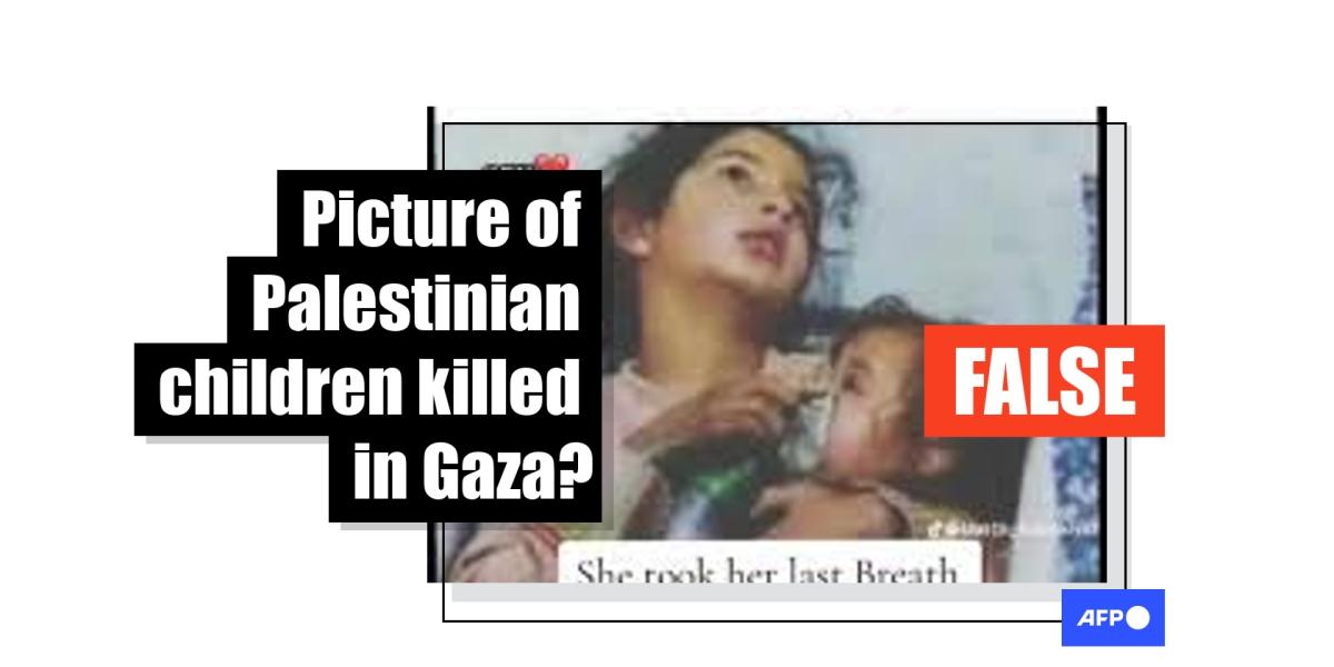 تداول مستخدمو وسائل التواصل الاجتماعي صورة تظهر فتاة فلسطينية صغيرة في قطاع غزة تساعد طفلا بقناع الأكسجين. لكن الصورة لا علاقة لها بالحرب بين إسرائيل وحماس؛ والتقطها مصور وكالة فرانس برس في عام 2018 بعد هجوم كيميائي سوري مشتبه به بالقرب من دمشق.