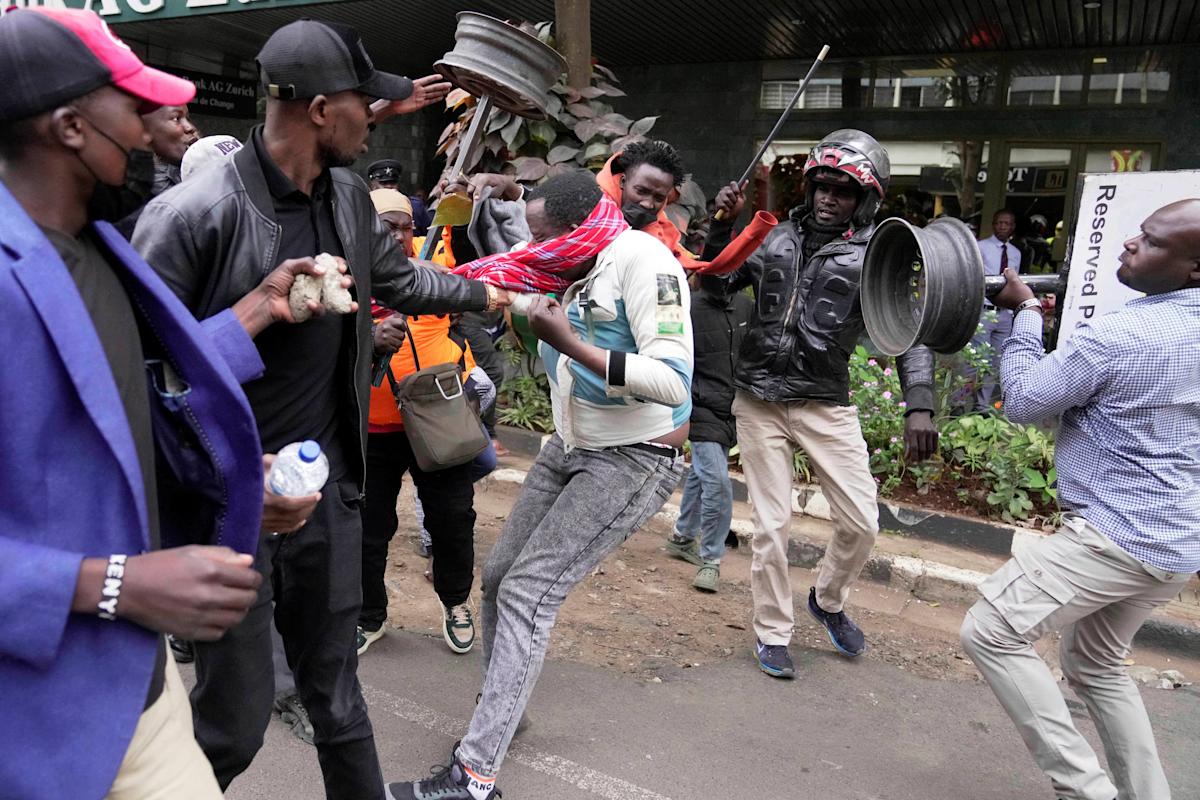 نيروبي ، كينيا (AP) – تحولت مظاهرة حول وفاة المدون ألبرت أوجوانج في حجز الشرطة يوم الثلاثاء مع الشرطة في معدات مكافحة الشغب التي تواجه المتظاهرين في وسط مدينة نيروبي ، كينيا. أصيب العديد من المتظاهرين ودمرت الممتلكات.