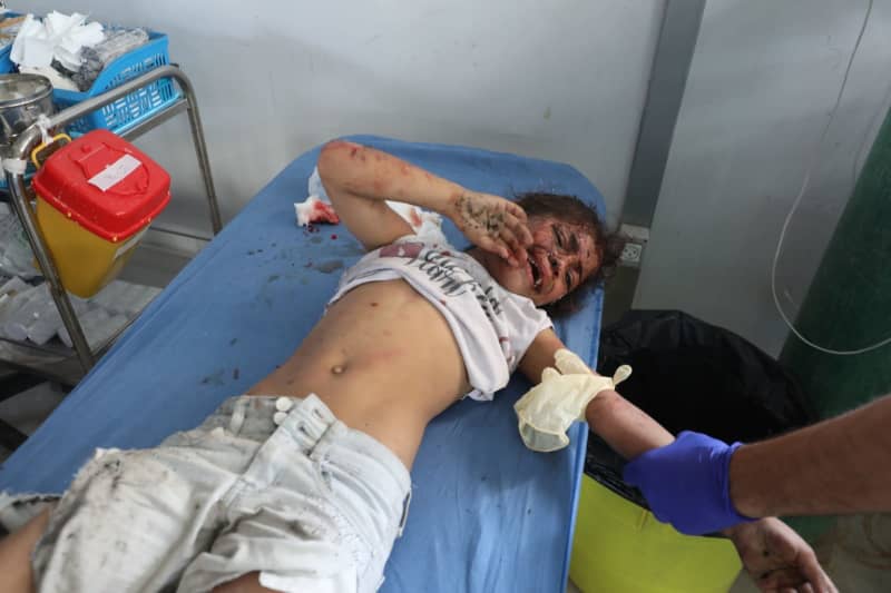 يحضر عمال هيث إلى طفل بيلستينيين الجرحى في مستشفى العودا ، بعد هجوم إسرائيلي على المأوى المدرسيين النازحين في معسكر نوسائر. Moiz Salhi/APA صور عبر Zuma Press Wire/DPA