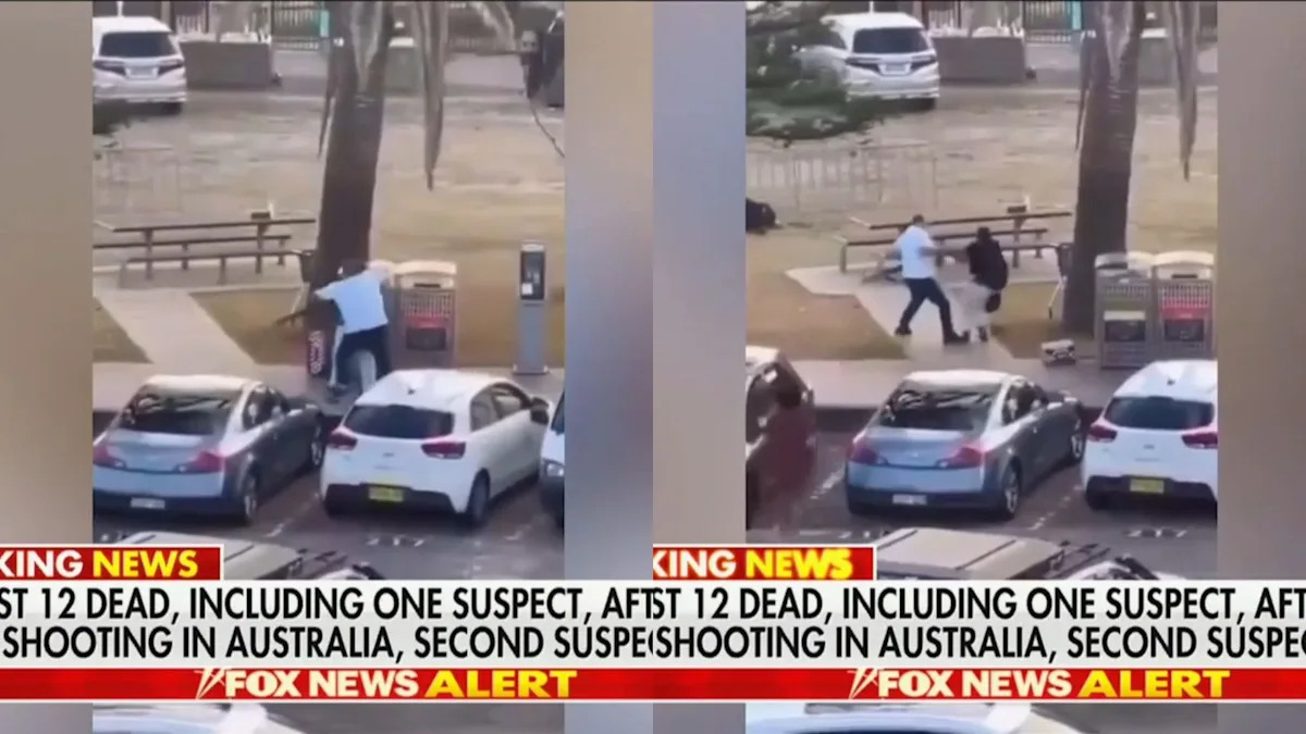 يبدو أن مقطع فيديو رائعًا تم تداوله عبر الإنترنت يظهر رجلاً يهاجم ويمزق مسدسًا من أحد مرتكبي إطلاق النار الجماعي على شاطئ بوندي الأسترالي في إحدى ضواحي سيدني مساء الأحد.