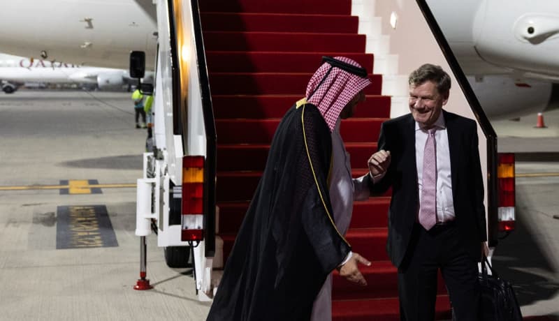 يوهان واديفول (C) ، وزير الخارجية Geman ، ينطلق من طائرة حكومية في مطار قطر. هانس ب. ألبرت/DPA