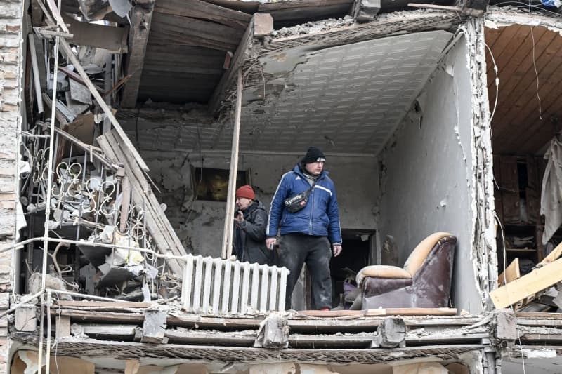 رجل يتفقد الدمار الذي خلفه الهجوم الصاروخي الروسي على زابوريزهيا. وأطلقت روسيا أربعة صواريخ في وقت مبكر من يوم الخميس، مما أسفر عن مقتل شخص وإصابة العشرات. -/أوكرينفورم/د ب أ