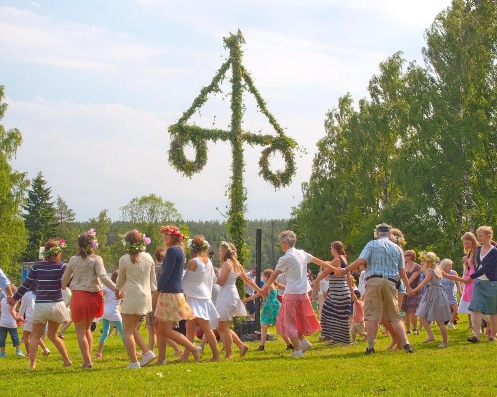 رقصة قطب منتصف الصيف في جنوب السويد