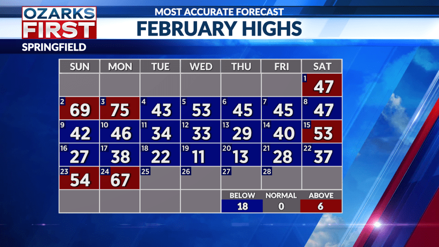 ستصبح السماء غائمة بحلول صباح الأربعاء حيث تقود الجبهة الباردة عبر المنطقة في منتصف النهار. تأتي الجبهة مع فرصة للاستحمام المطر المبعثر ولكن لا تعتمد في فترة طويلة من الظروف الرطبة. بعض المناطق لن ترى أي أمطار على الإطلاق. ستستمر درجات الحرارة إلى حوالي 5 إلى 10 درجات برودة ، ولكنها ستستمر فوق المعدل الطبيعي في أواخر فبراير.