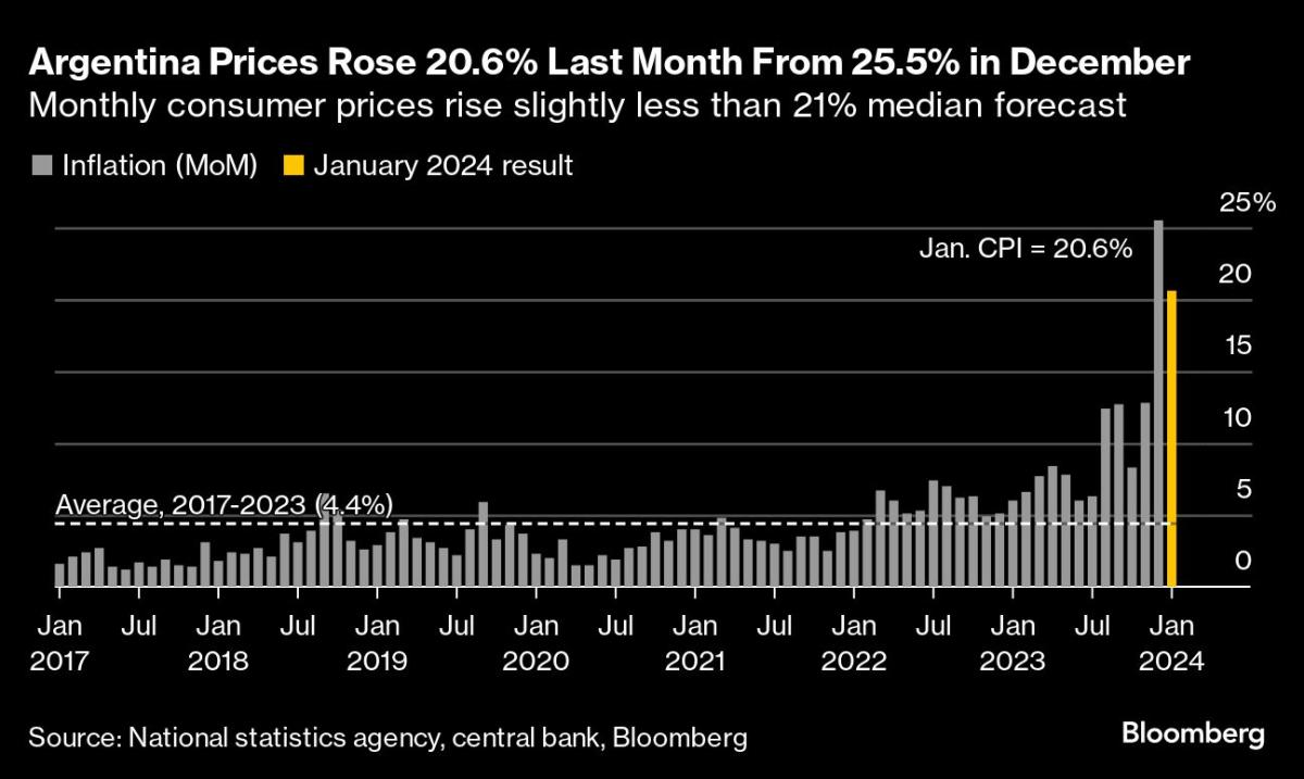 اقرأ المزيد: تباطؤ التضخم في الأرجنتين في أول شهر كامل لخافيير مايلي