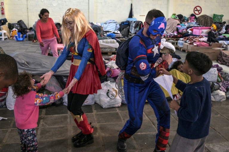 محاطًا بجبل من الملابس والألعاب التي تم التبرع بها، كان ما يقرب من 800 شخص يقيمون في هذه الحظيرة الكبيرة يوم الأحد في عاصمة ريو غراندي دو سول.