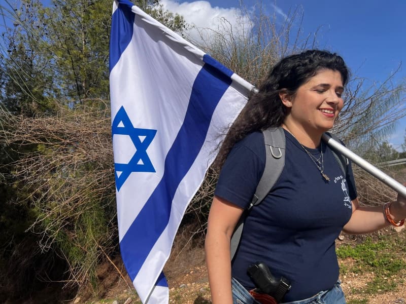 وبدأت هاسكل رحلتها يوم الأحد، بالسير على طول الطرق السريعة حاملة الأعلام الإسرائيلية في محاولة لرفع مستوى الوعي.