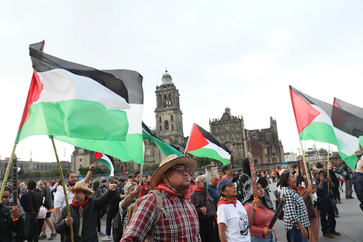 المسيرة السنوية للاحتفال 1968 مذبحة Tlatelolco من الاحتجاج على الطلاب في عاصمة المكسيك ، تعرضت للمطالب بإنهاء حرب الإبادة الجماعية التي استمرت عامين تقريبًا في غزة في غزة.