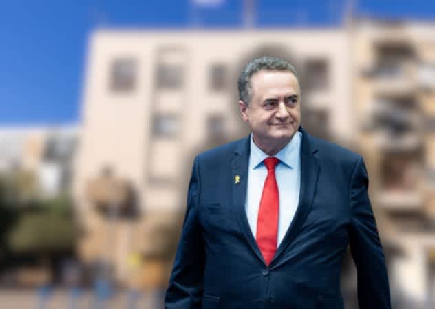 وزير الدفاع يسرائيل كاتس على خلفية مبنى راديو الجيش. (الصورة: يوناتان سيندل/FLASH90، يوسي ألوني/FLASH90)