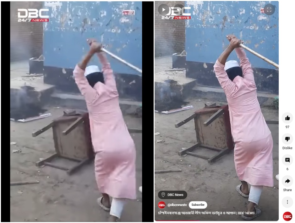 يمكن رؤية شعار أخبار الأخبار في بنغلاديش DBC في الركن الأيسر العلوي. وجد البحث عن الكلمات الرئيسية على YouTube أن المذيع نشر المقطع في 25 فبراير 2025 (الرابط المؤرشفة).