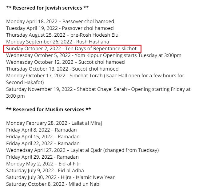 لكنها تضيف أن الموقع بأكمله مخصص فقط لخدمات الصلاة اليهودية لمدة عشرة أيام في السنة، كما أنه مخصص أيضًا لخدمات صلاة المسلمين لمدة عشرة أيام أخرى في السنة.