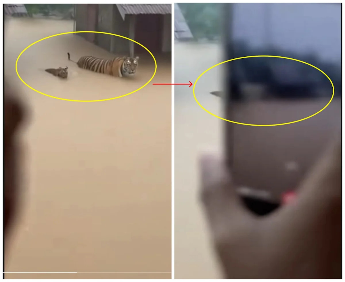 ثقيل الفيضانات في ولاية تيرينجانو شرق ماليزيا في أواخر نوفمبر 2025، أجبرت الآلاف على مغادرة منازلهم. وسرعان ما ظهرت على الإنترنت لقطات تظهر نمورًا وهي تخوض مياه الفيضانات في منطقة سكنية، مما أثار القلق بين بعض مستخدمي وسائل التواصل الاجتماعي. ورفضت وكالة الحياة البرية بالولاية هذه الشائعات، في حين وجد التحليل أن الصور المرئية تحمل أخطاء تشير إلى أنها تم إنشاؤها بواسطة الذكاء الاصطناعي.