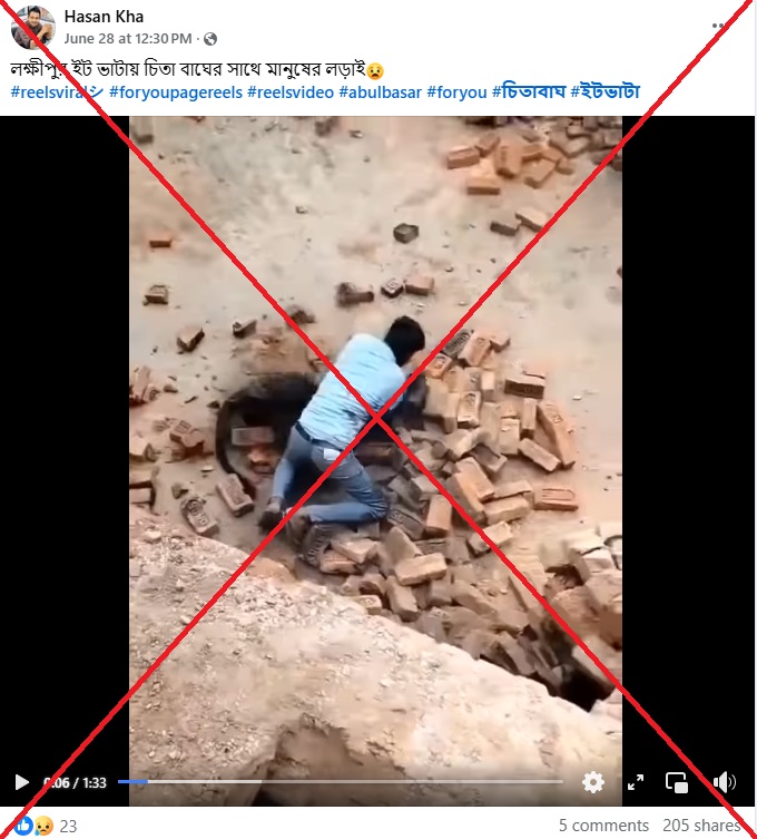 “معركة إنسانية مع ليوبارد في لاكشمبور بريك كيلن” ، يقرأ منشور فيسبوك بلغة البنغالية من 28 يونيو 2025 ، في إشارة إلى منطقة ساحلية في قسم شيتاغونج في بنغلاديش (أرشفة وصلة).