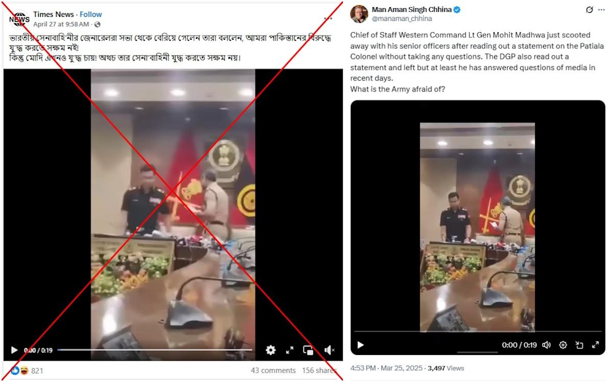 تبادل الهند وباكستان المدفعية الثقيلة على طول الحدود المتنازع عليها في تصعيد كبير بعد هجوم 22 أبريل 2025 على الجانب الهندي من منطقة كشمير المتنازع عليها. لكن اللقطات التي تم إعادة صياغتها على وسائل التواصل الاجتماعي لا تظهر أن المسؤولين العسكريين الهنود يعترفون بأنهم غير قادرين على محاربة باكستان ، على عكس المطالبات الخاطئة على وسائل التواصل الاجتماعي. يظهر المقطع مؤتمر صحفي قديم عن عقيد اتهم الشرطة بالاعتداء عليه.