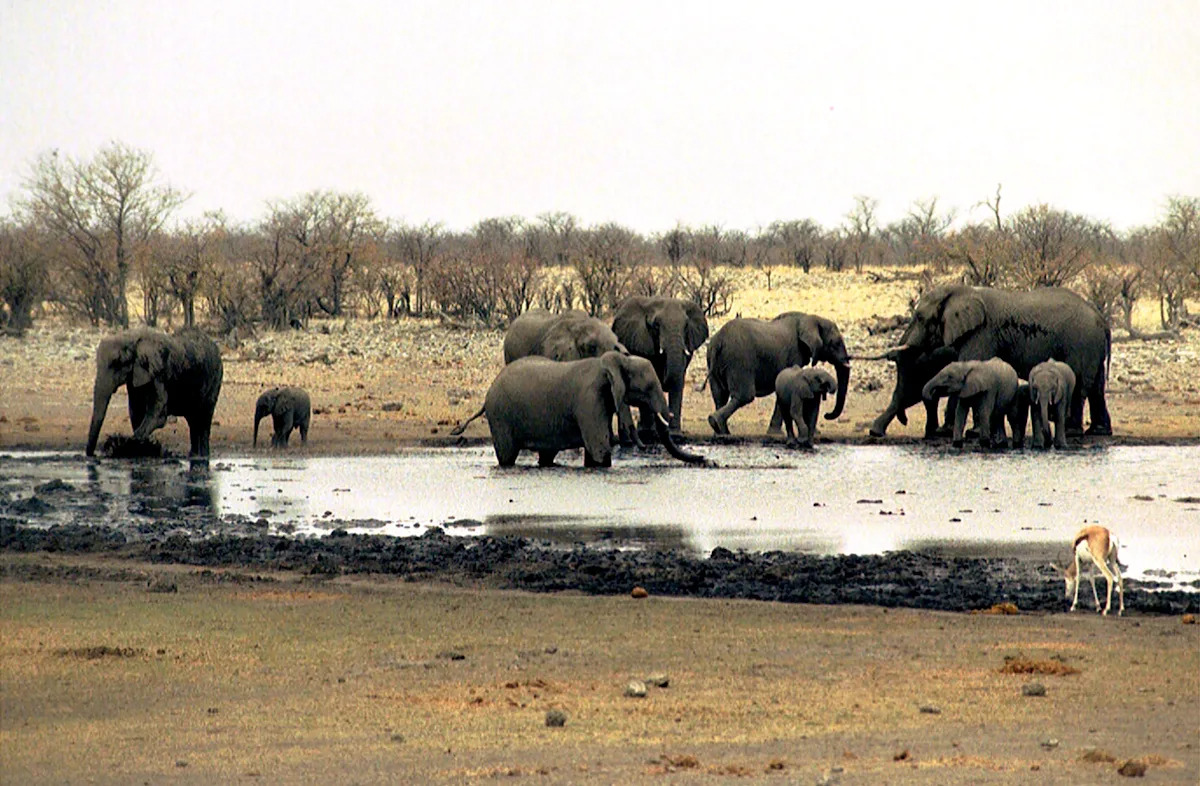 تعد حديقة Etosha الوطنية واحدة من أكبر في أفريقيا وتشتهر بعصاها الملح التي تتحول إلى بحيرة خلال موسم الأمطار وتجذب الحياة البرية.