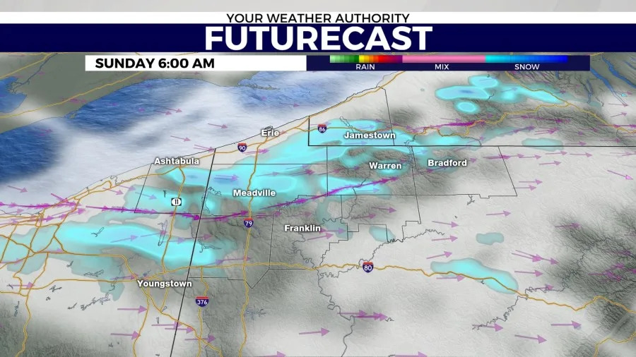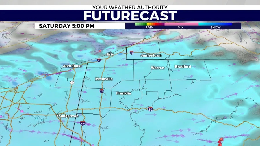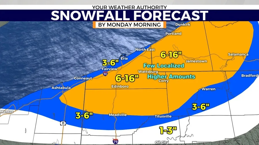 المرحلة 3 هي تساقط الثلوج بتأثير البحيرة من ليلة السبت إلى وقت متأخر من ليلة الأحد / صباح الاثنين. تتفق العارضات على أن الفرق لا تبقى لفترة طويلة في إيري أو على طول شاطئ البحيرة وتسقط في أحزمة الثلج وتقيم هناك طوال مدة العاصفة.