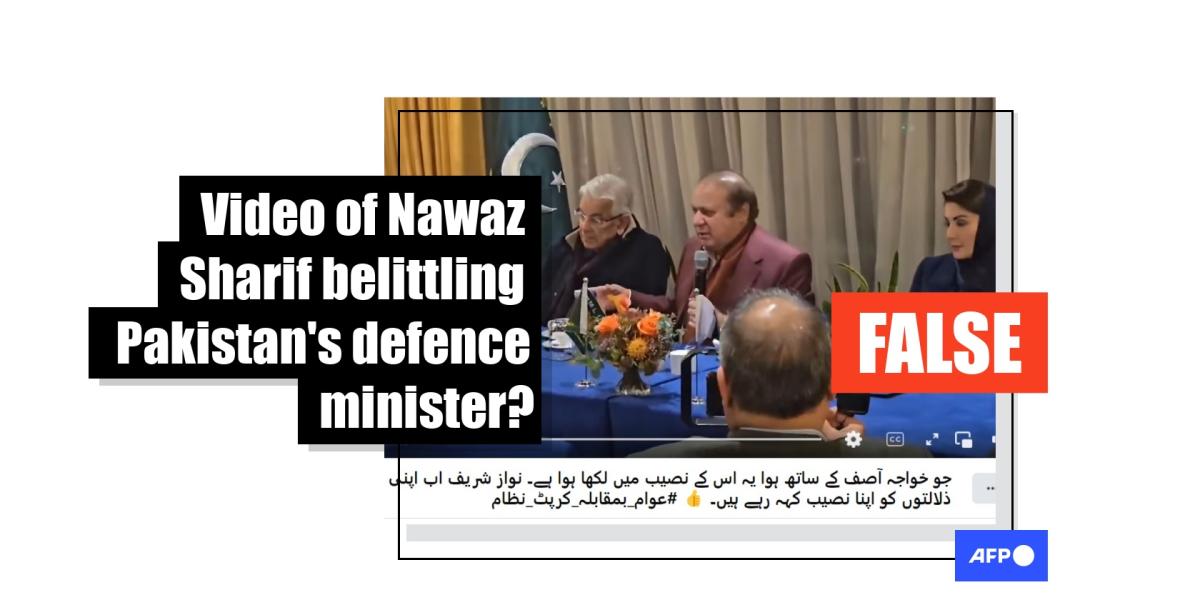بعد أن قال وزير الدفاع الباكستاني خواجة محمد آصف إن رجلاً هدد بطعنه في لندن، حصد مقطع فيديو تم تحريره يظهر فيه السياسي نواز شريف وهو يسخر منه، مئات الآلاف من المشاهدات عبر الإنترنت. ومع ذلك، تم تحرير الفيديو بشكل مضلل من لقطات أطول تظهر في الواقع شريف وهو ينتقد أولئك الذين يضايقون المسؤولين الباكستانيين في أعقاب سلسلة من الحوادث في بريطانيا.