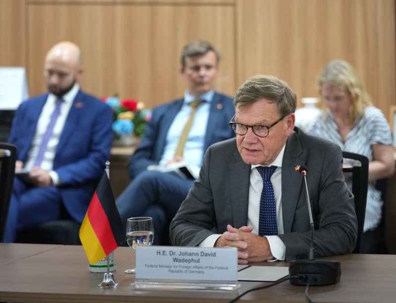 يقدم وزير الخارجية الألماني يوهان واديول بيانًا ويأخذ أسئلة من الصحفيين في نهاية رحلته. Soeren Stache/DPA